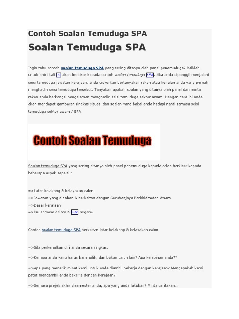 Contoh Soalan Temuduga Spa Soalan Bocor Interview Spa Wordless Wednesday Tahu Spa